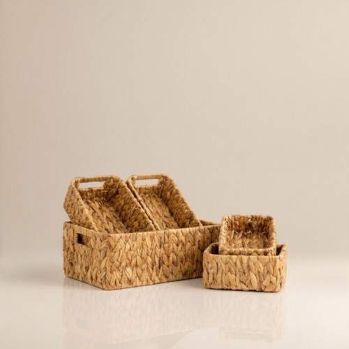 Organizer ve saklama amacıyla kullanılabildiği gibi, doğal hasır yapısı sayesinde yaşam alanlarına sıcak ve estetik bir hava katar. Minimal, bohem ve modern dekorasyon stilleriyle uyumlu bir settir.
