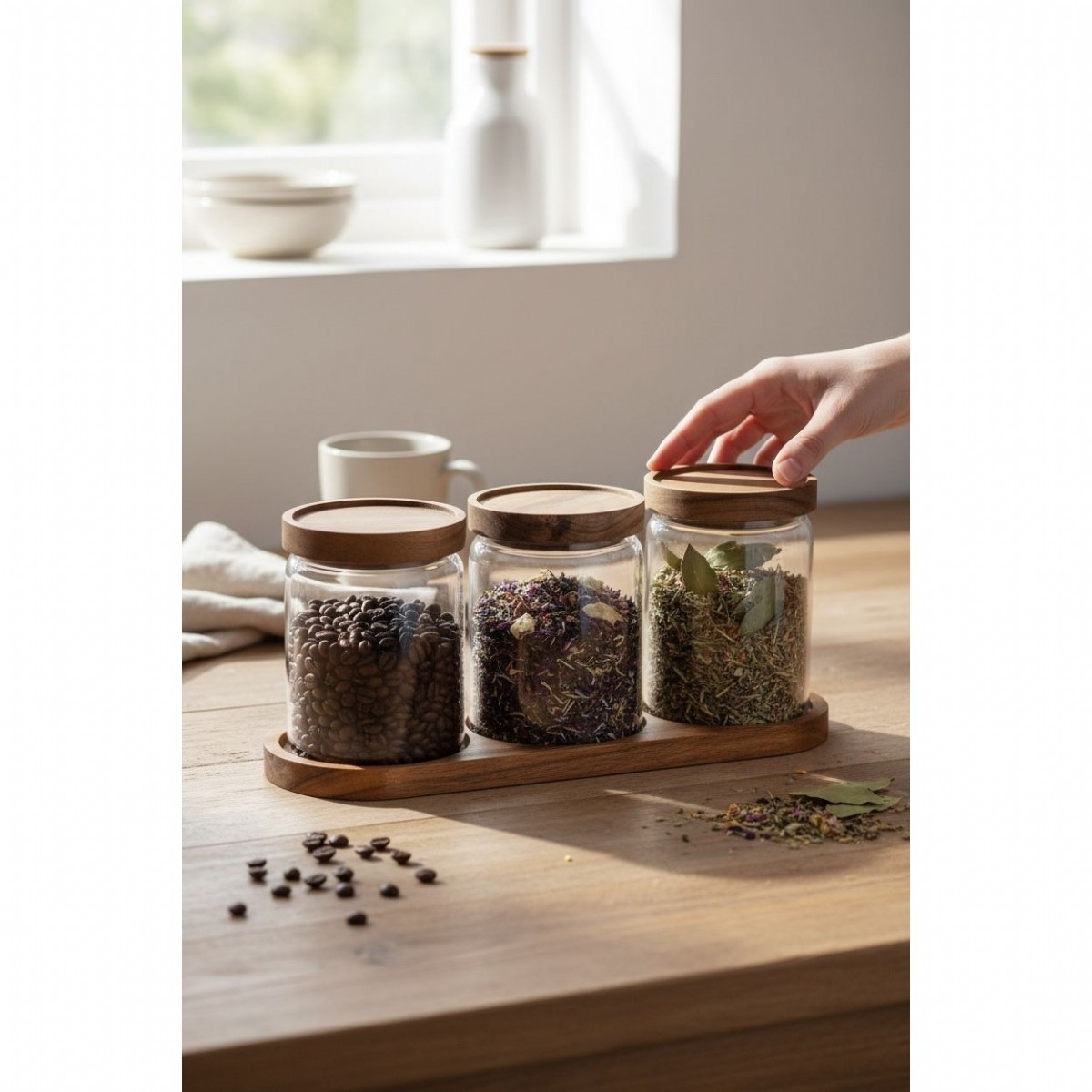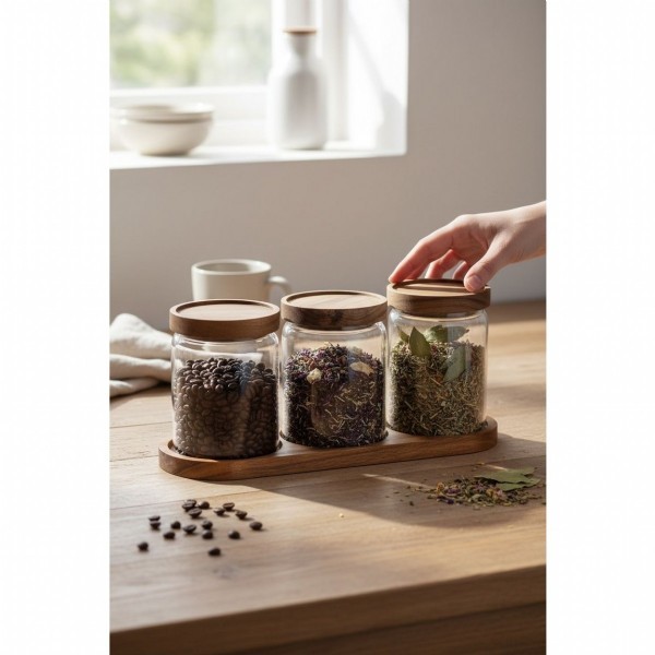 Doğal akasya ağacından üretilmiş kapaklar, gıdaların tazeliğini korumaya yardımcı olur. Set halinde sunulan bu cam kavanozlar; mutfak rafları, tezgâh üstü ve dolap içi kullanım için uygundur.