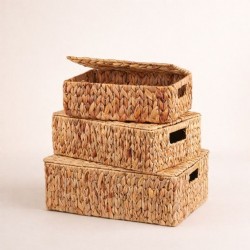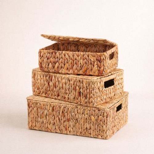 Kapaklı Hasır 3’lü Depolama Sepeti Seti