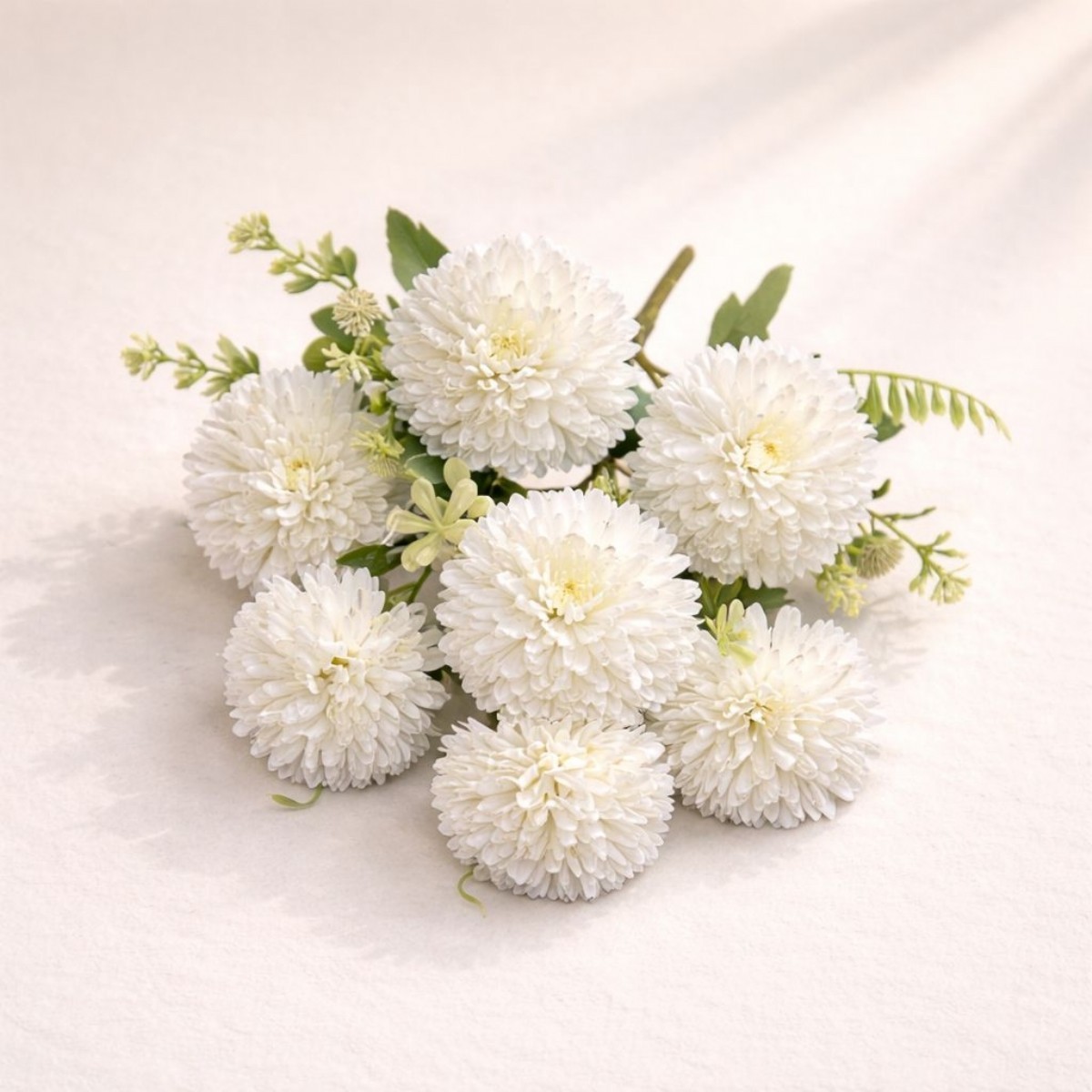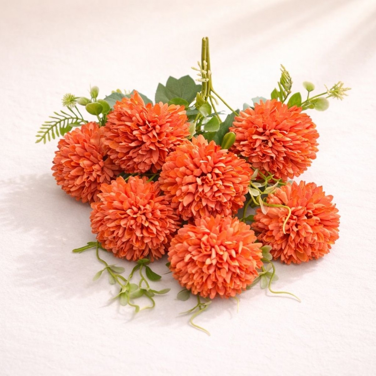 Doğal görünümüyle dikkat çeken 7 başlı kasımpatı yapay çiçek, yaşam alanlarınıza zarif ve ferah bir hava katar. Solma ve bakım derdi olmadan uzun yıllar kullanılabilir.