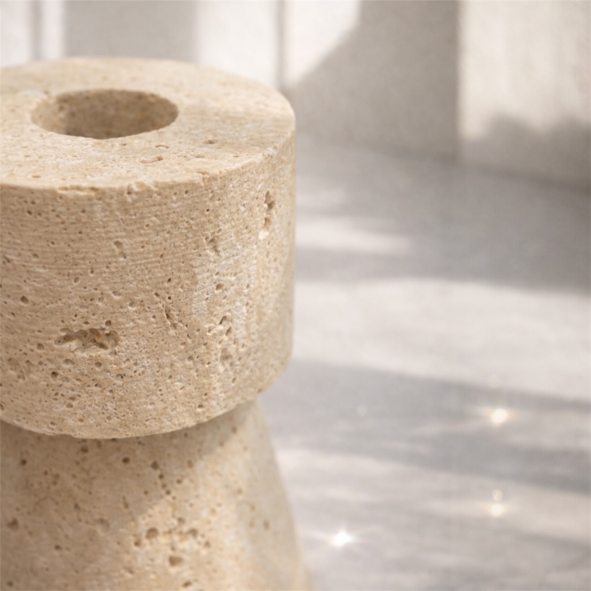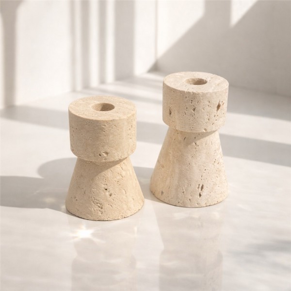 Traverten Mumluk 2’li Set | Doğal Taş El Yapımı Dekoratif Mumluk